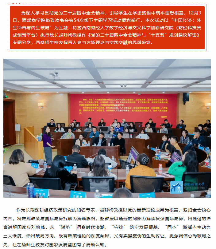 以思想破局 以青春作答——捕鱼赚钱 格致读书会学习贯彻党的二十届四中全会精神与“十五五”规划建议主题活动顺利举行