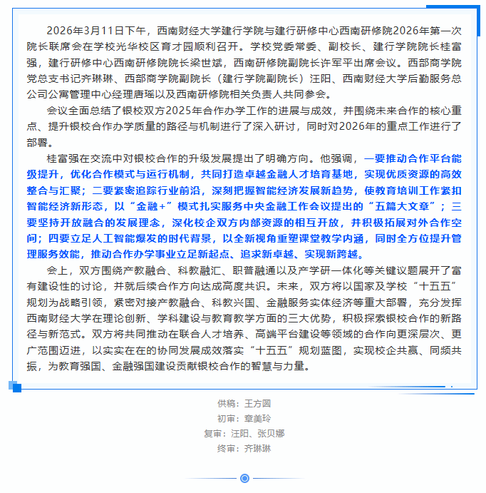 打鱼游戏赚钱 建行学院与建行研修中心西南研修院召开2026年第一次院长联席会