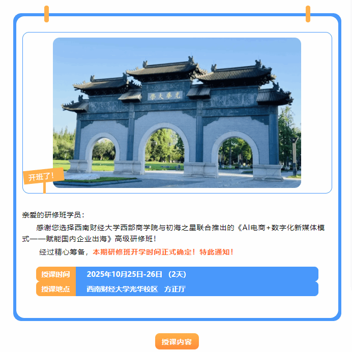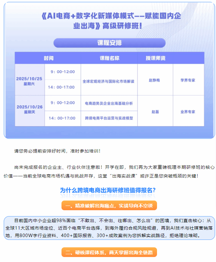 【重要通知】跨境电商出海研修班开学时间定了!